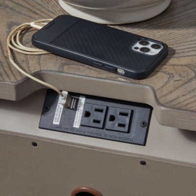- 110V power supply with USB-A and USB-C charging ports