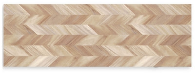 - Two-tone finish (dry, light finish over replicated oak grain; light chevron pattern)