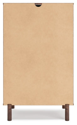 At the intersection of industrial cool and chic sophistication, you’ll find this chest of drawers. With a rich brown finish over replicated walnut wood grain, paired with burnished goldtone handles, it offers an authentic touch that plays well any way you style it. Simple and elegant in its design, this piece keeps your home decor grounded while elevating your modern style.