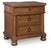 Taking a laid-back approach to casual traditional design, this artfully crafted nightstand combines classic elements with a clean modern approach. Its rich medium brown wood tone exudes a comfy, timeless appeal that's sure to carry you away to a dreamy time and place. Simple round metal knobs and ring pulls on the nightstand's spacious drawers make just the right statement, while an integrated power outlet and USB charging keep your devices powered up overnight.