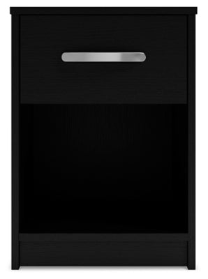 Practical and attractive, this nightstand blends seamlessly with modern decor and makes a smart addition to a bedroom. The smooth-gliding drawer on metal ball bearings is ideal for bedside essentials. An open cubby provides a nice place for a storage basket or vase. The nightstand's curved metal pull in a brushed nickel-tone finish adds to the streamlined aesthetic. Combine with other units in the collection to create a room that’s sleek and stylish.