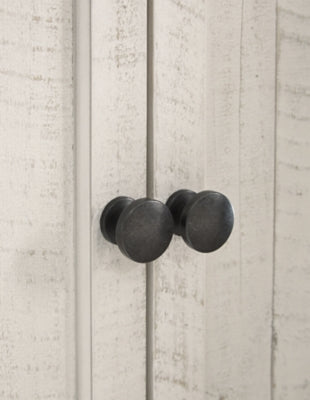 - Two-tone distressed finish: weathered gray top; vintage white base