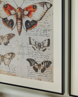 Grace your walls with vintage charm. This exquisite wall art set features intricate butterfly prints floating over a backdrop of antique script, creating a timeless and elegant look. Sleek black frames add subtle sophistication to this trio.