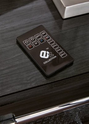Rest easy. The luxurious look you’ve been dreaming of is yours for the taking, at a price sure to put you at ease. This queen upholstered headboard brings a sense of old Hollywood with a contemporary flair. A deep, dark finish, faceted chrome-tone accents and LED lighting exude Hollywood-chic style to the max. Padded windowpane stitching on the sleek black upholstery infuses a sumptuous look that’s upscale and indulgent, and utterly on trend. A wireless remote allows you to control the color and brightness to suit the mood.