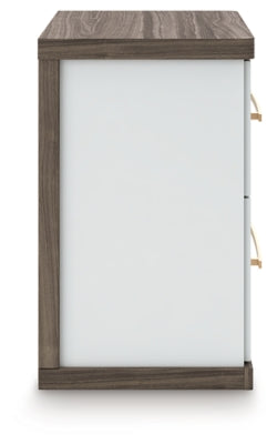 Looking to make a subtly striking statement in your bedroom? We've got you covered. This nightstand’s sophisticated two-tone treatment marries a warm brown finish over replicated walnut grain with a matte white finish. Rounded corners and a thick top radiate an air of modern panache, while sleek handles in a champagne finish add a sparkling touch to the spacious drawers. And built-in USB charging keeps your gadgets powered up. It’s a master class in contemporary yet comfortable character.