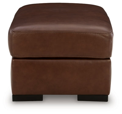 Effortlessly stylish, indulgently comfortable. This ottoman encourages everyday relaxation with an invitingly plush, spacious cushion. It embodies affordable luxury, pairing the sleek appeal of top grain leather with expertly matched faux leather. Suiting spaces from casual to contemporary, the ottoman's universal appeal makes staging your space nearly effortless.